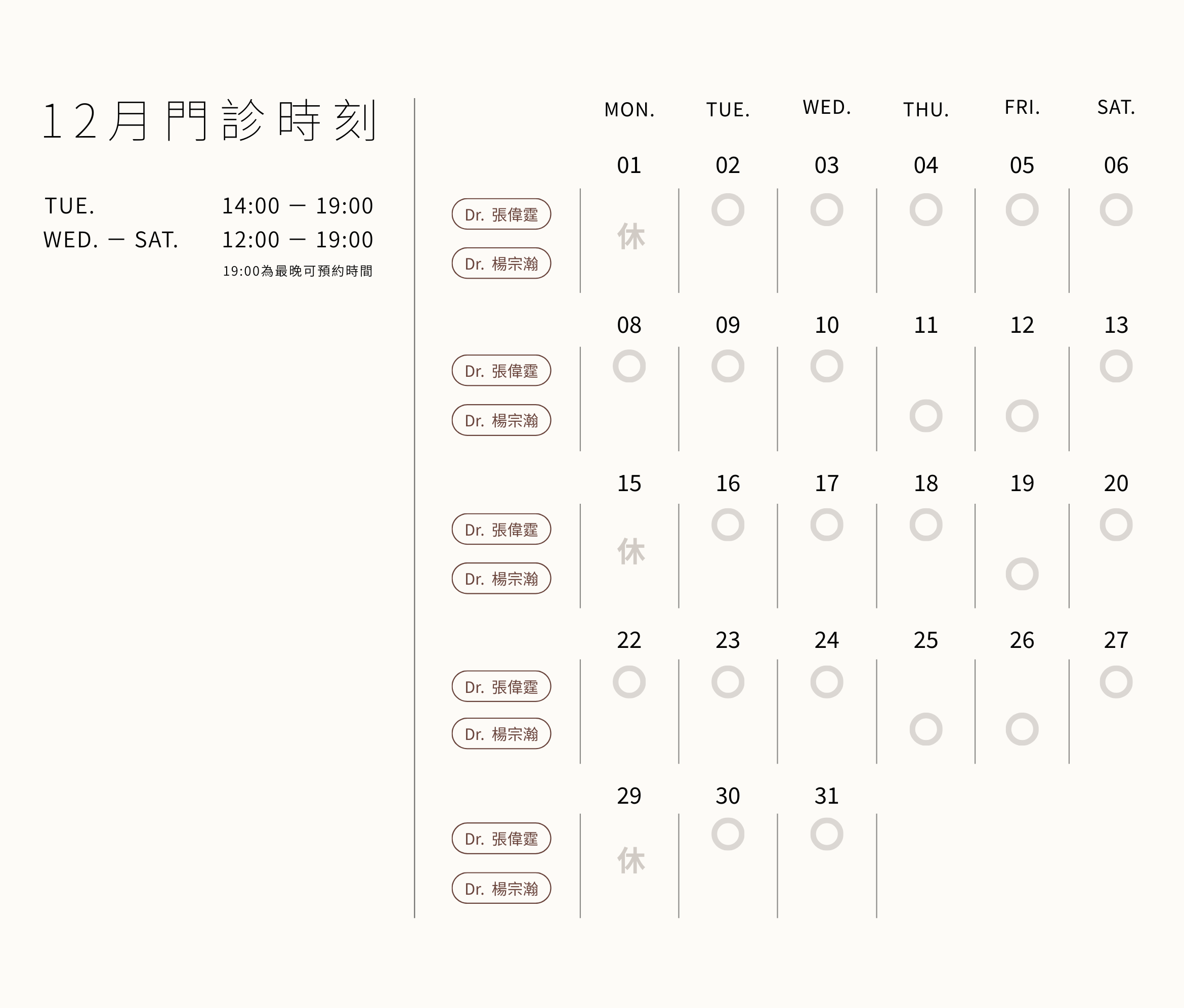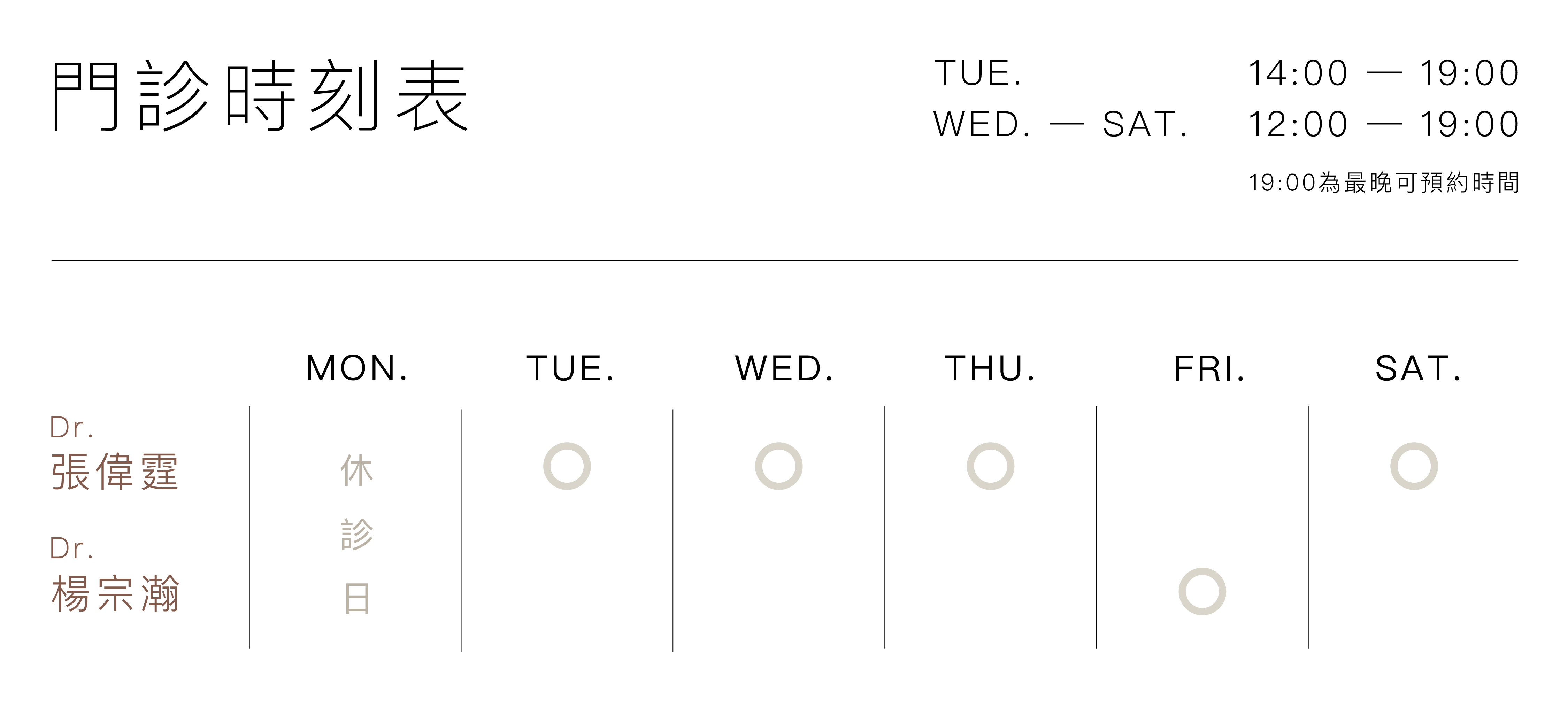 勤診所門診時刻表
