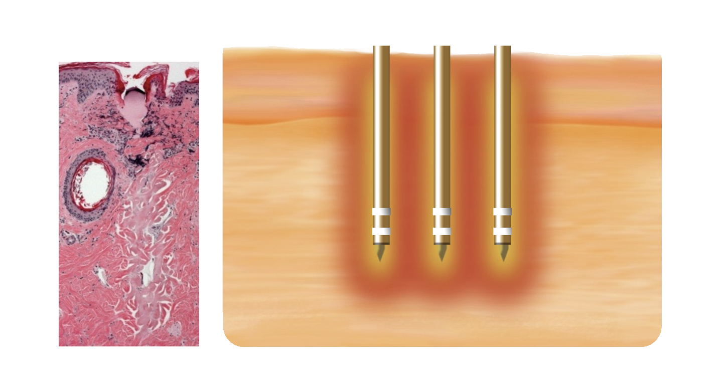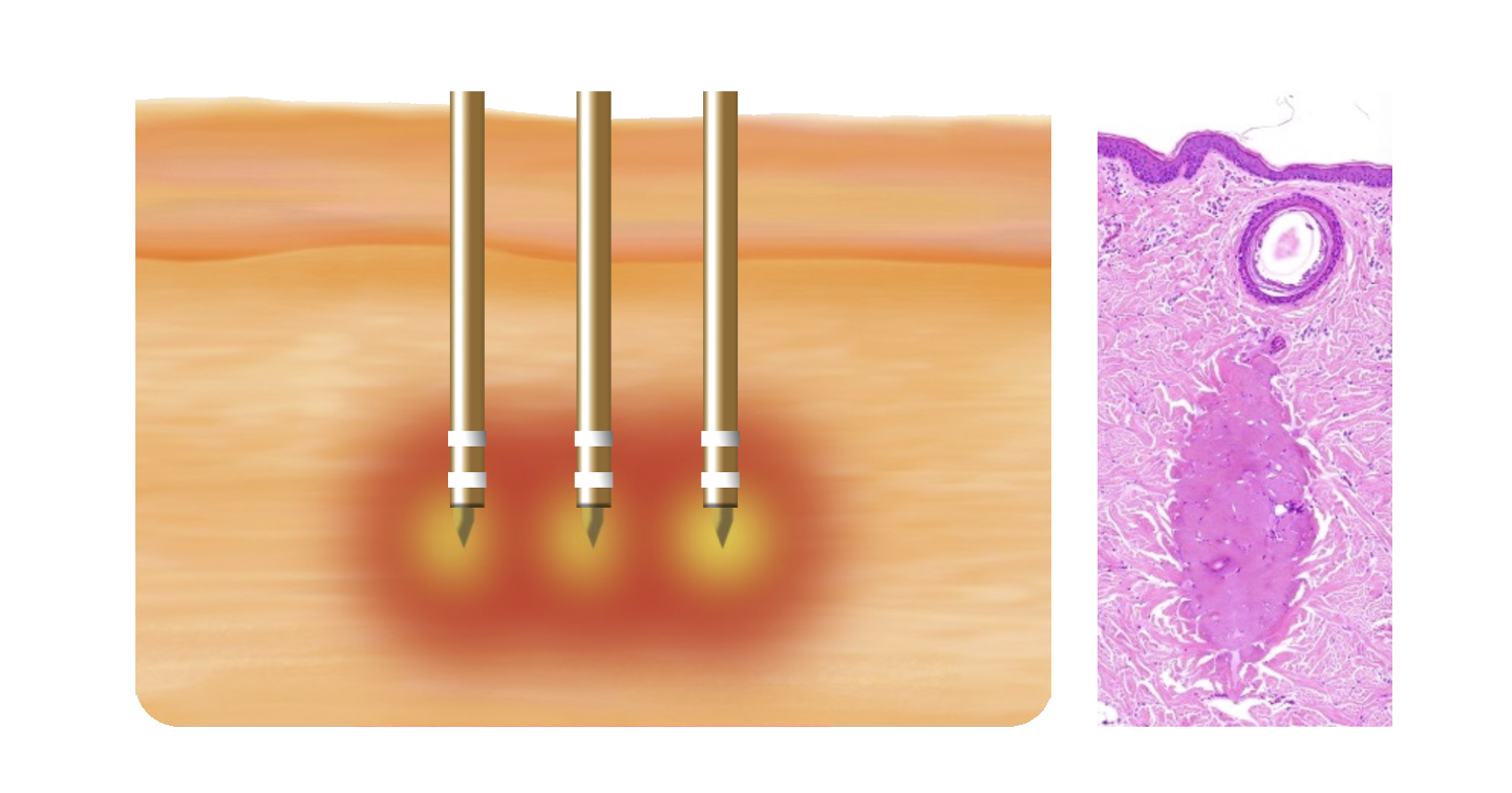 加熱範圍 | 集中加熱針尖所達的目標層次 | 針體貫穿的部位皆會傳遞熱能 |