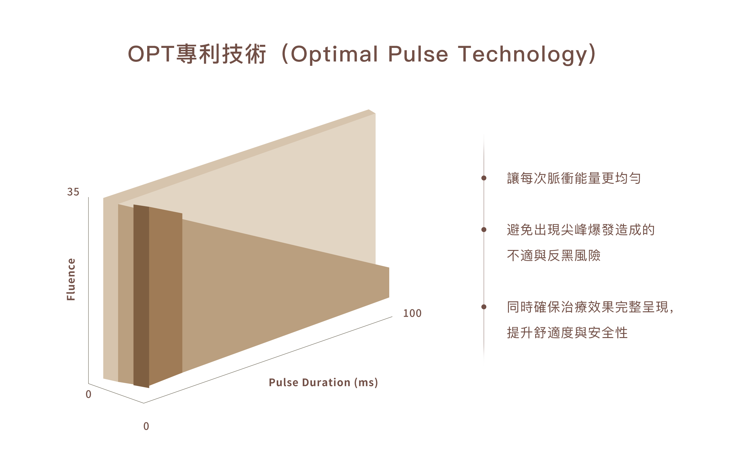 OPT技術可在連續脈衝輸出的過程中,確保皮膚獲得充分冷卻時間,形成穩定的保護層,從而大幅降低熱傷害與治療效果不均的風險。每一次脈衝的能量輸出均勻平穩,有效避免傳統光療常見的能量高峰衝擊現象,不僅提升治療舒適度,同時進一步確保術後肌膚安全與穩定性。