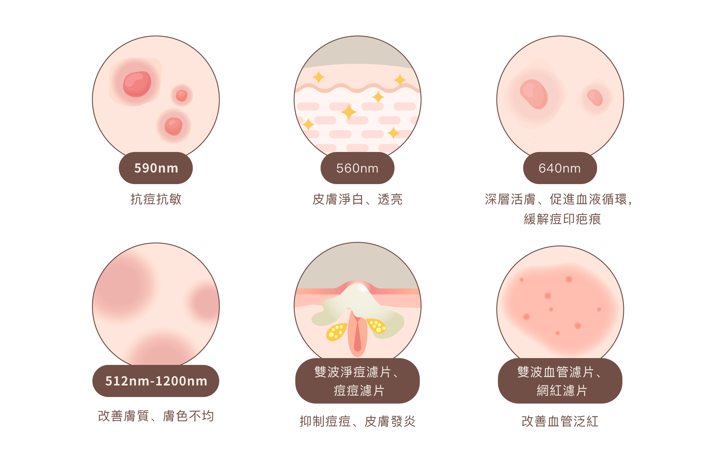 每一種濾鏡經臨床驗證,針對特定波長的能量吸收特性進行設計,讓治療過程中光能量可以更專一作用於目標組織,有效提升治療效果,同時降低對正常肌膚組織的干擾與刺激。