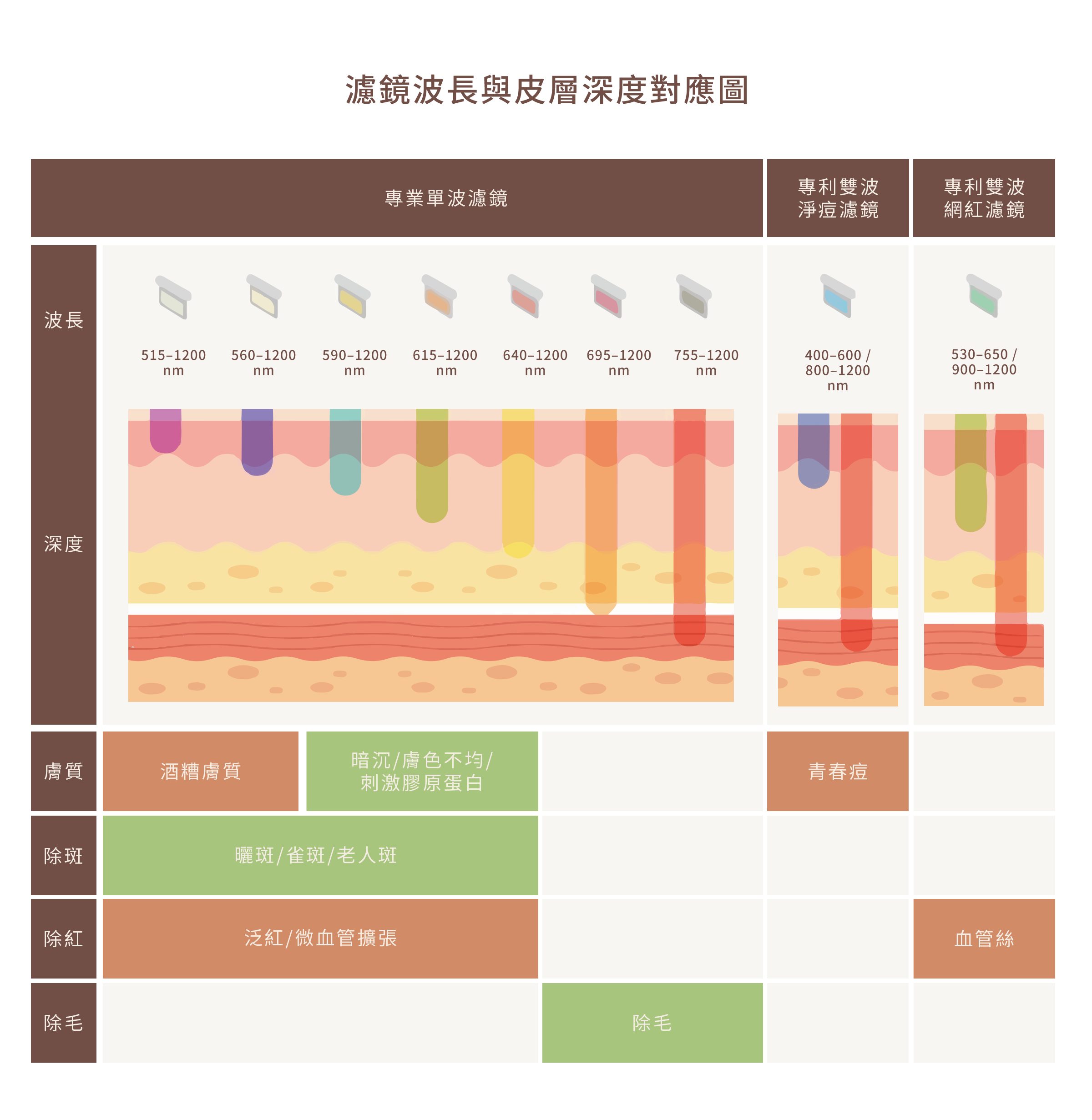 400–600nm + 800–1200nm(雙波淨痘濾鏡)