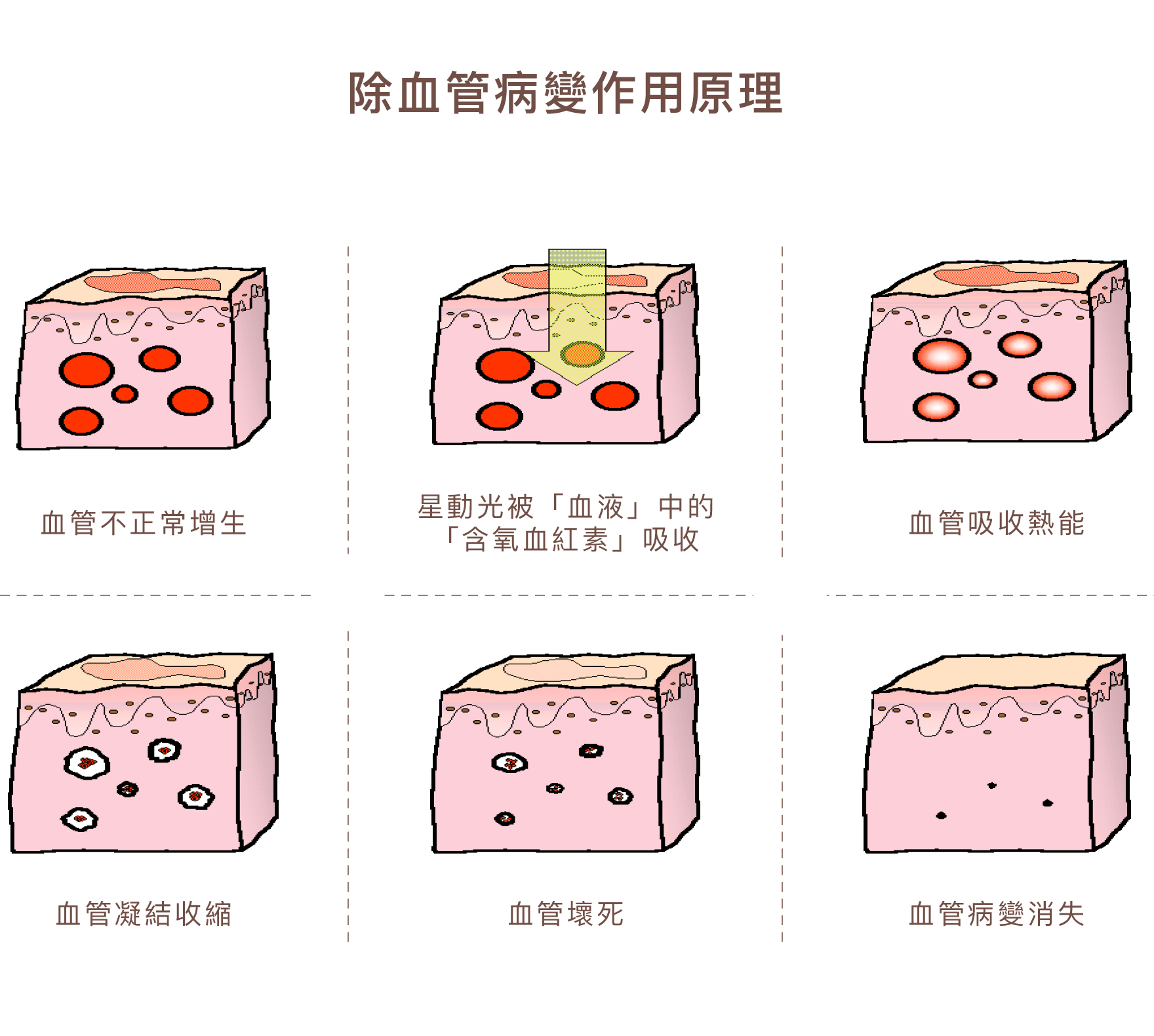 在治療過程中,特定波長的光能穿透表皮層而不破壞其完整性,並於真皮層轉換為熱能。
